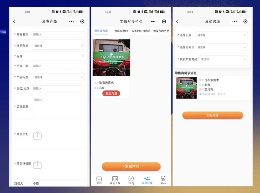 為了讓成員企業(yè)采購(gòu)總監(jiān)們?cè)诖髸?huì)前能夠?qū)崿F(xiàn)充分了解,本次大會(huì)專門開發(fā)了幫助零售商和供應(yīng)商高效對(duì)接的線上平臺(tái),零售商可以填寫關(guān)于商品采購(gòu)的需求,一鍵同步到需求廣場(chǎng)。供應(yīng)商可以發(fā)布自己的商品及政策,一鍵發(fā)布到供應(yīng)大廳。做到大會(huì)前線上提前了解,心中有數(shù),大會(huì)現(xiàn)場(chǎng)直接對(duì)接,省心高效。