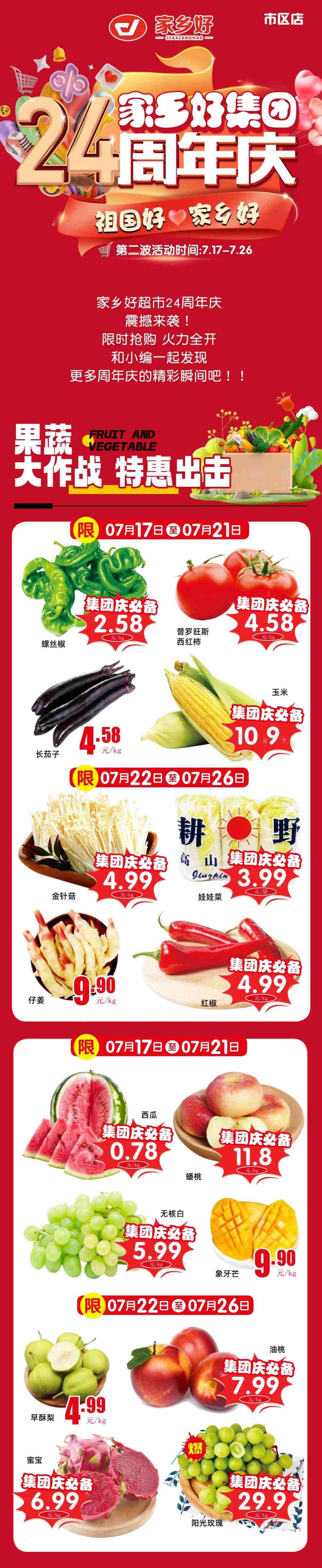 【家鄉(xiāng)好超市】市區(qū)店 | 家鄉(xiāng)好集團(tuán)24周年慶!7月17日-7月26日,嗨購周年慶,惠動全城!
